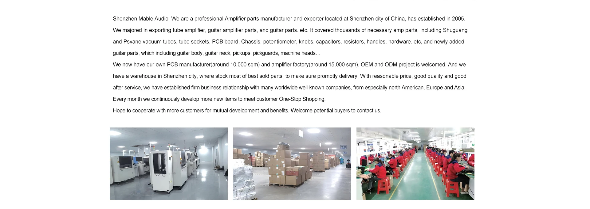 Prodotti principali: Tubi Shuguang, prese a tubo, kit amplificatore per chitarra, condensatori, telaio
